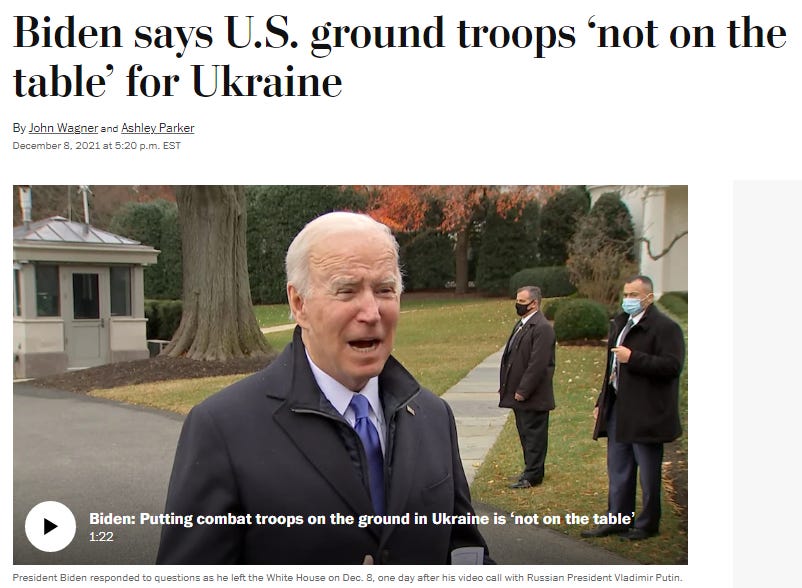 On Dec 8th 2021 - Biden promised the American people and the world that there will be “No boots on the ground” in Ukraine: