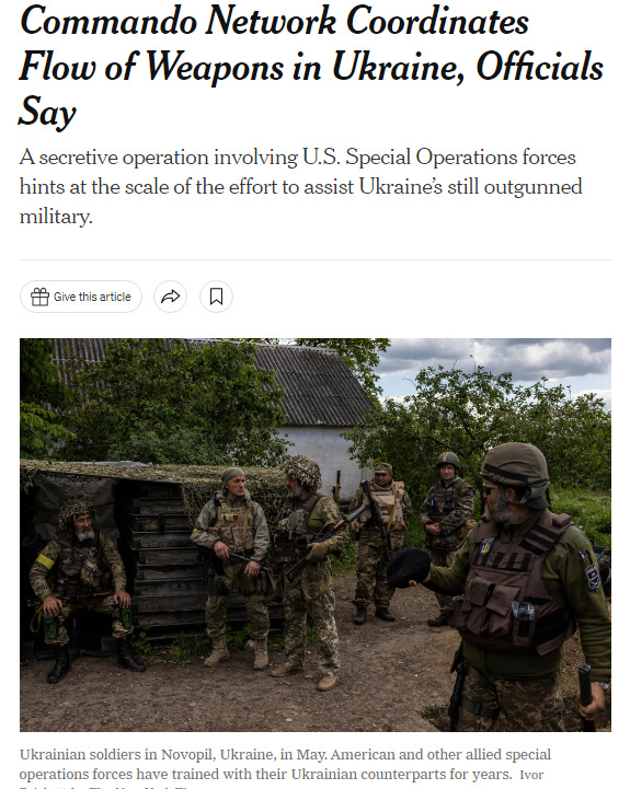 June 25th - US and European officials reveal to the New York Times that dozens of CIA operatives, US special forces, and commandos from several European countries are on the ground in Ukraine, advising, providing intelligence, directing Ukrainian proxy forces actions by satellite-linked battlefield tablets, and “directing the flow of weapons” to the front.
