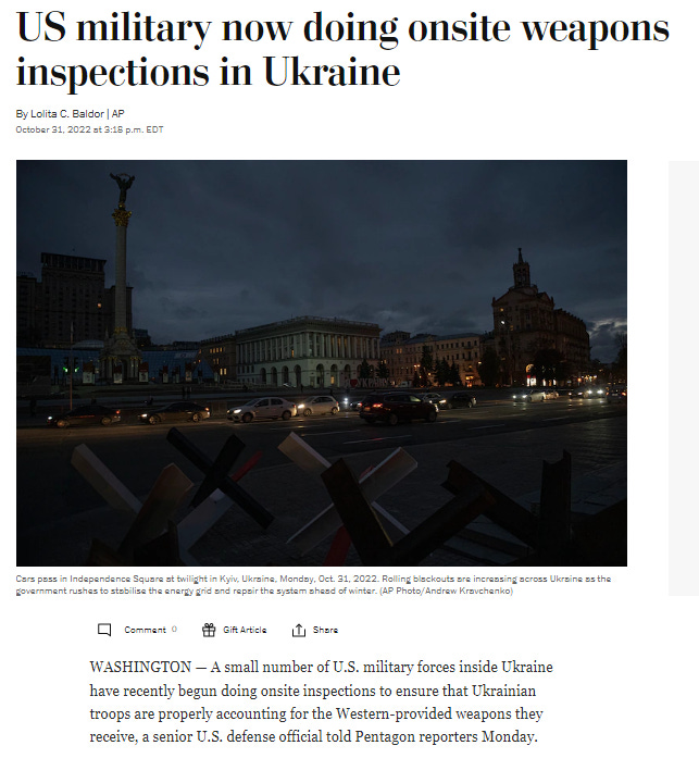 And on October 31st – The Boots are officially on the ground. A Senior US defense official admits to the Washington Post that an unspecified number of uniformed active duty US military troops are on the ground in Ukraine supposedly “inspecting US weapons caches”.