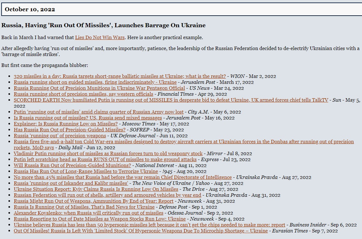 Meanwhile despite tidal waves of wishful thinking & disinfo stories about Russia running out of this and that from the beginning of the conflict, almost none of it has been proven true. If bs fakenews production rate won conflicts the West would win hand’s down.